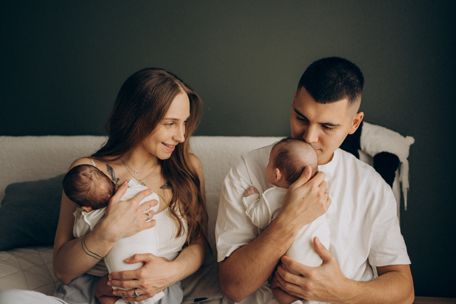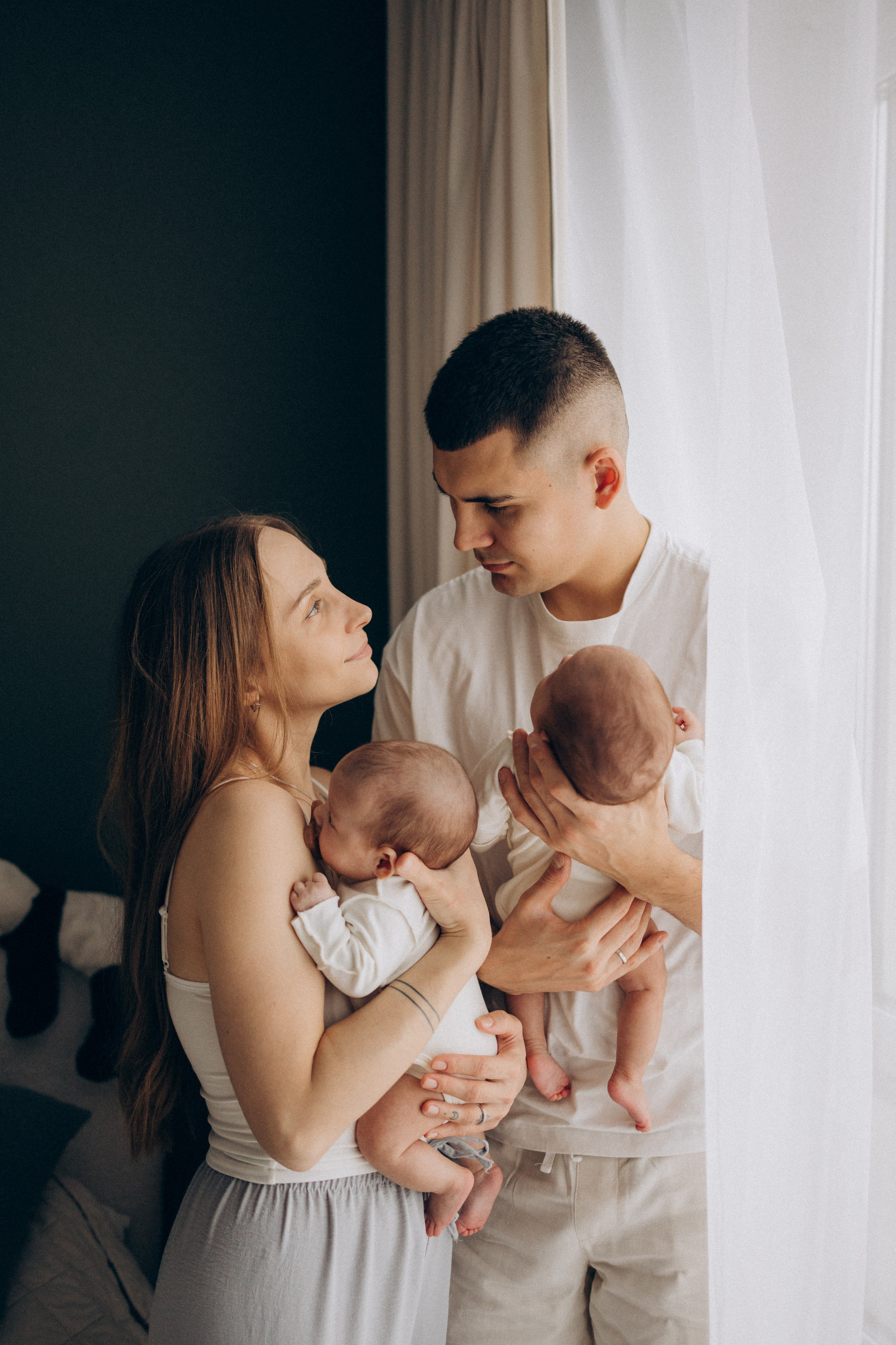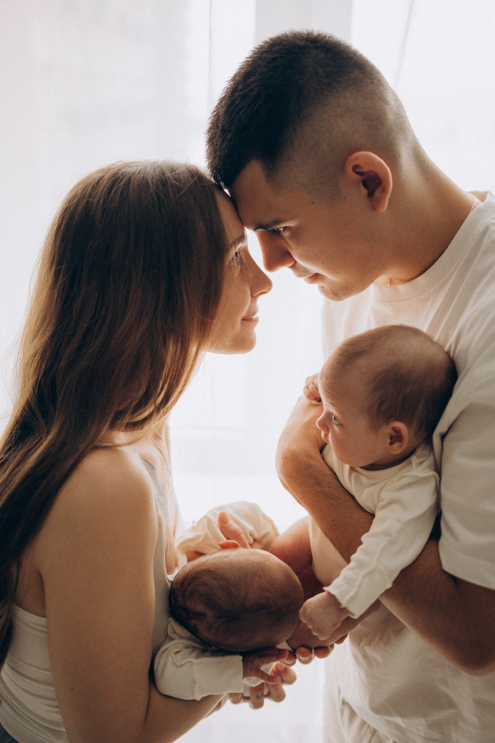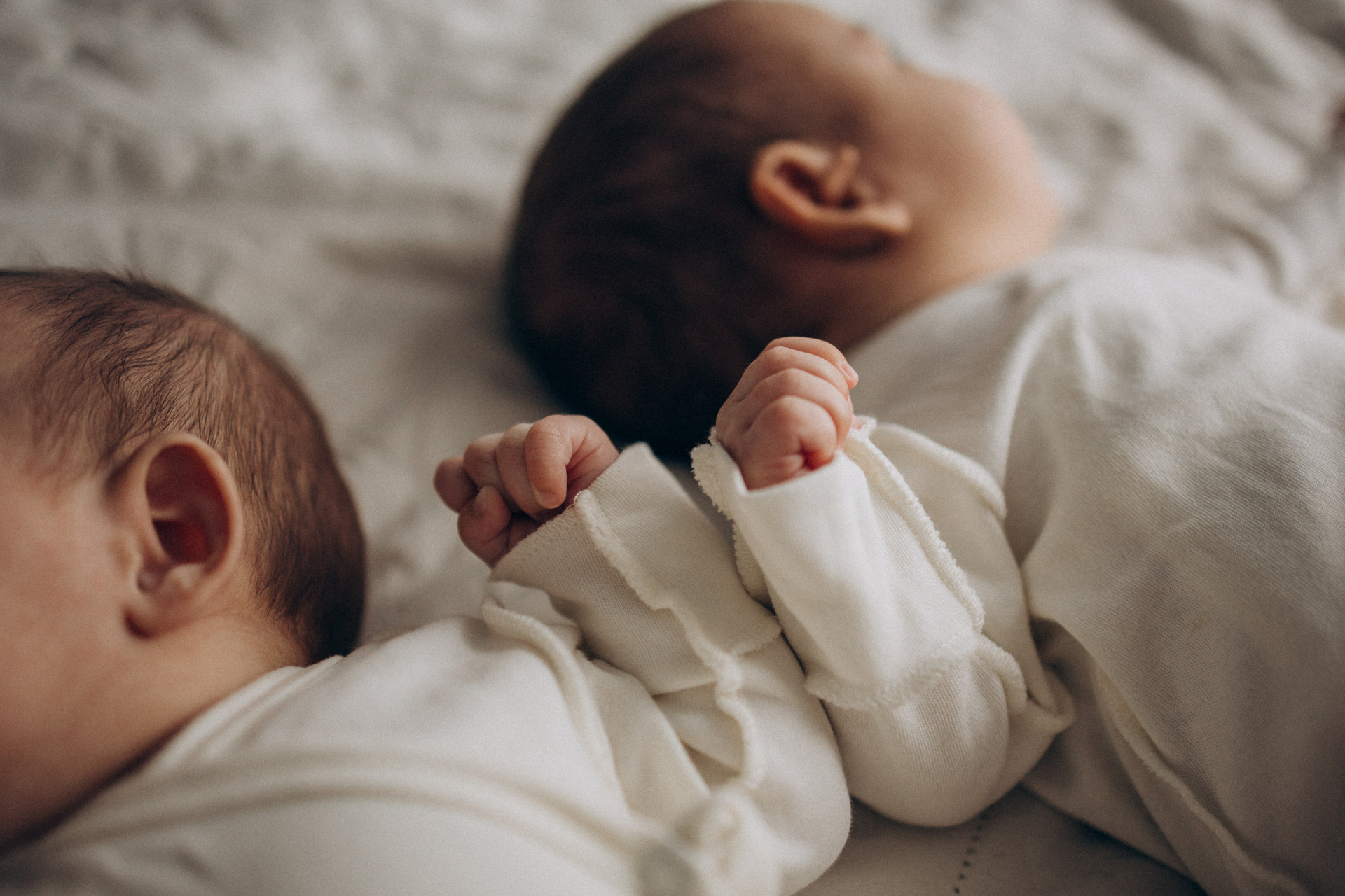 Съёмка новорожденных двойняшек — это всегда двойная нежность и волшебство. Два сердечка, два взгляда, две пары крохотных ладошек и одна общая история, наполненная любовью.