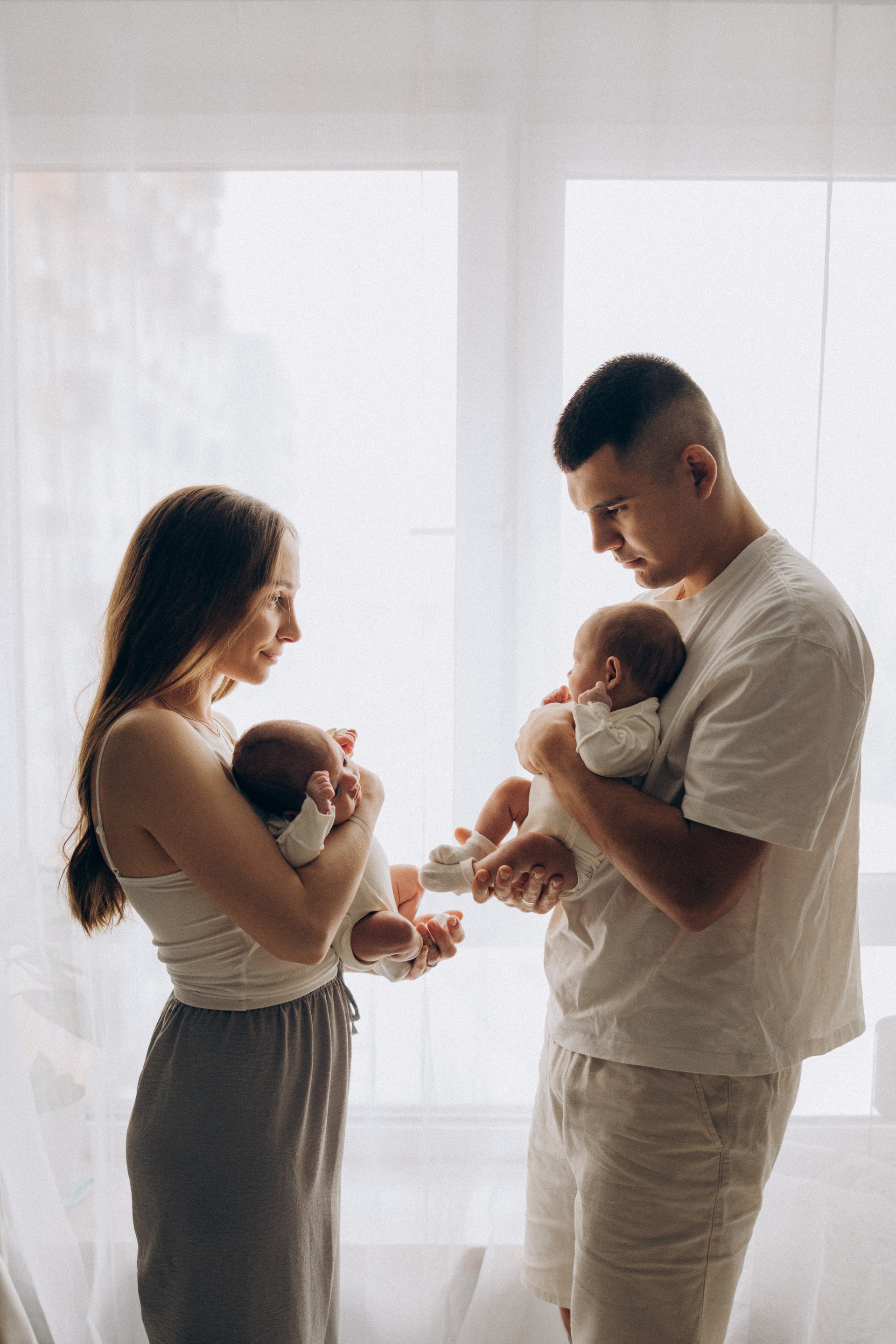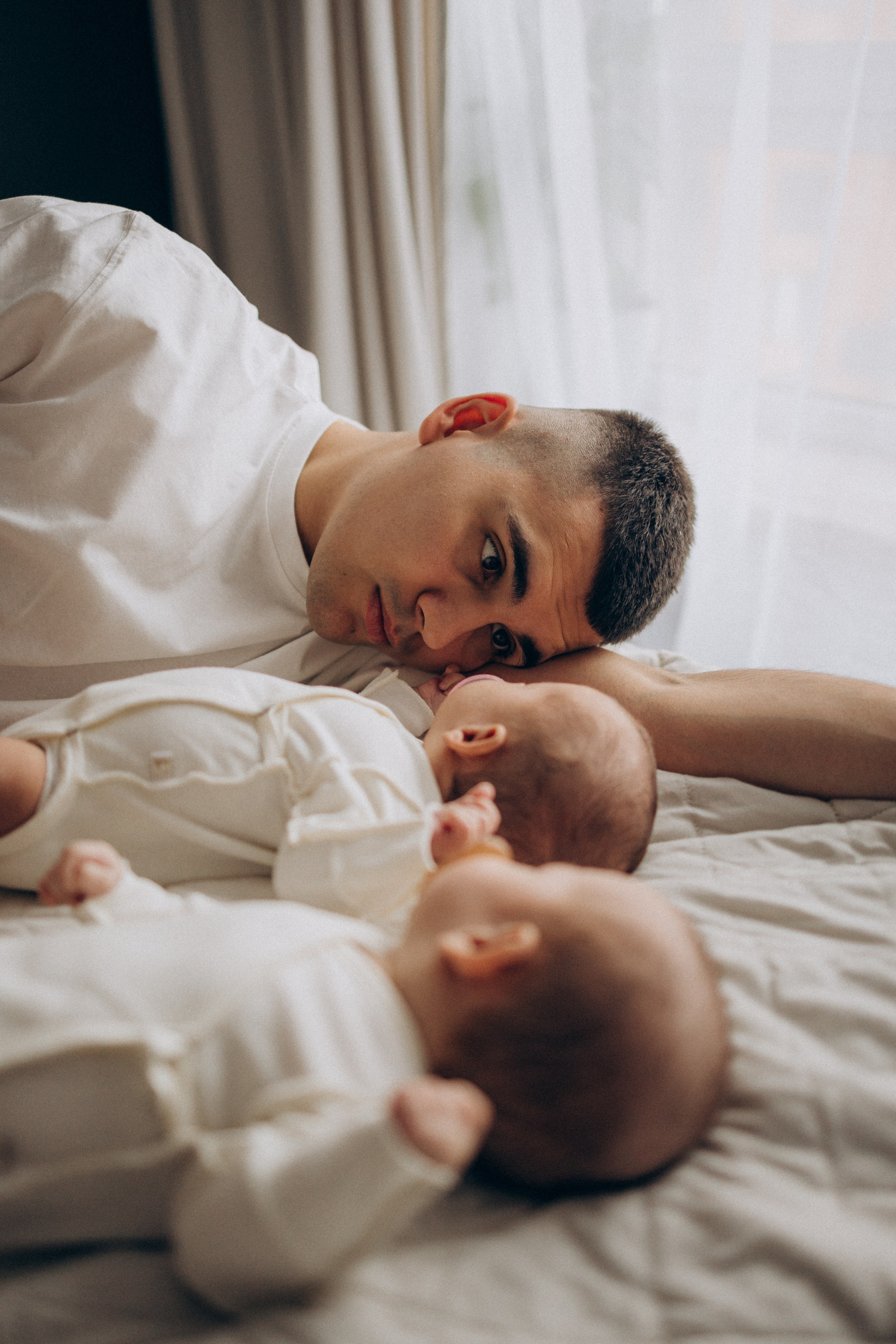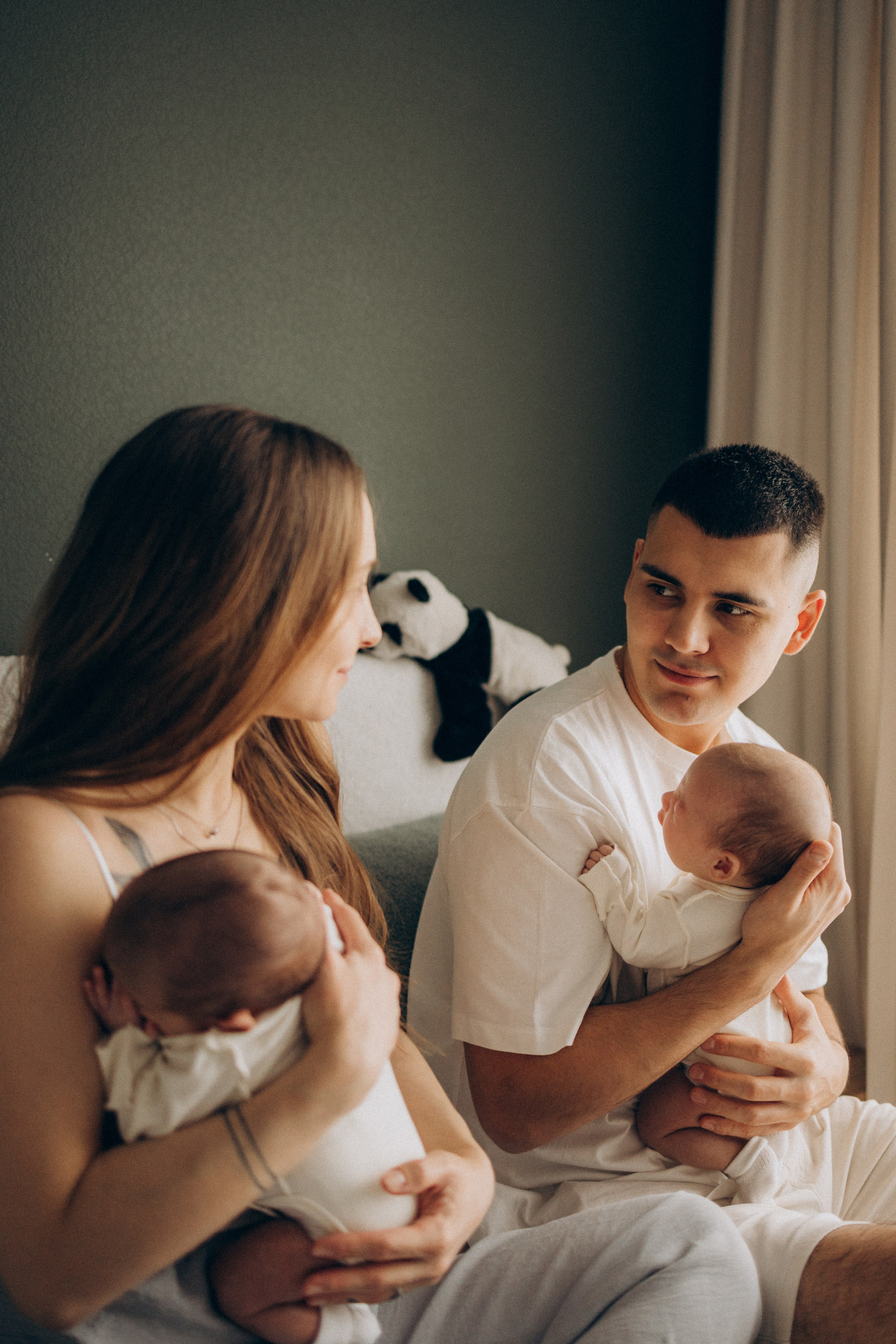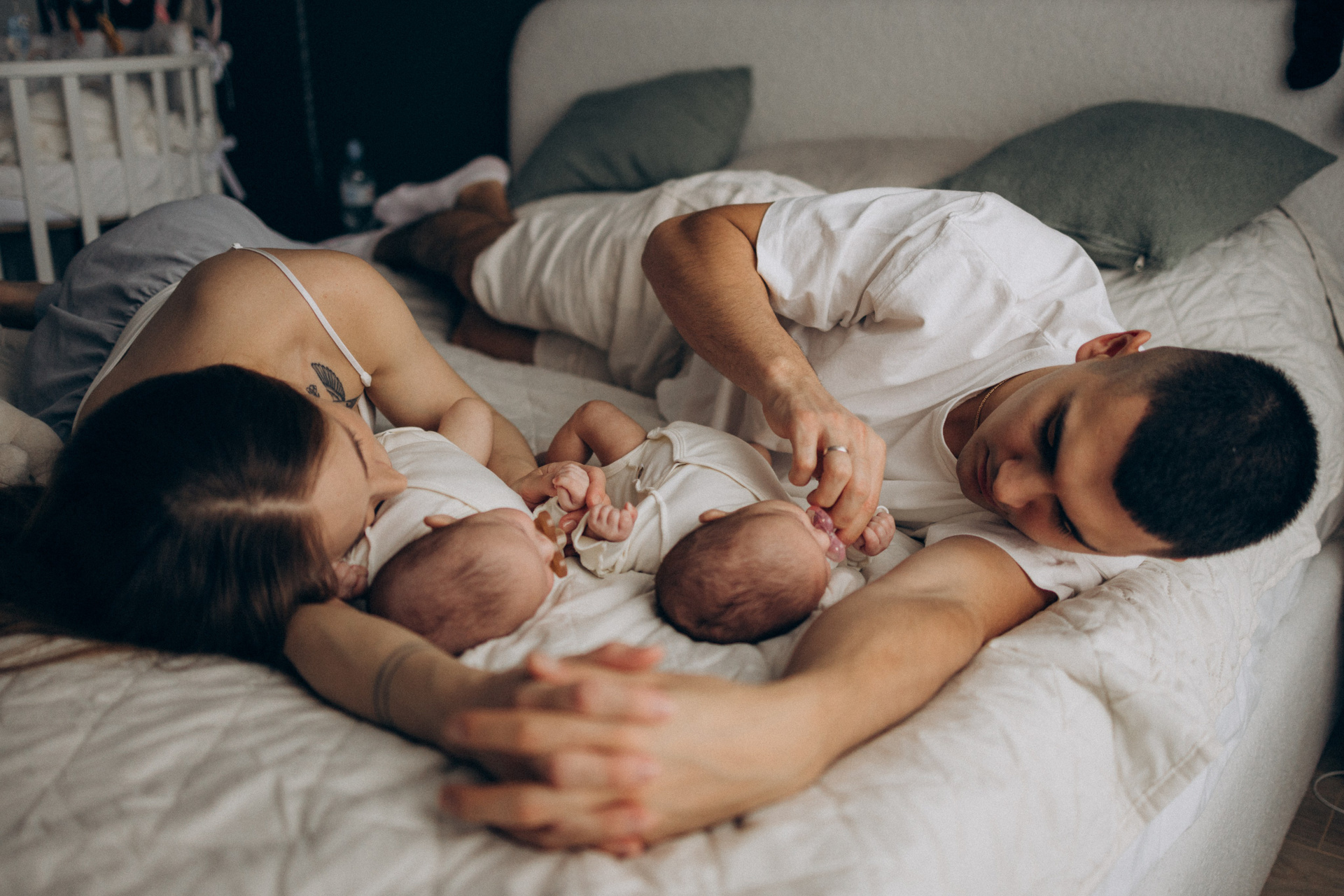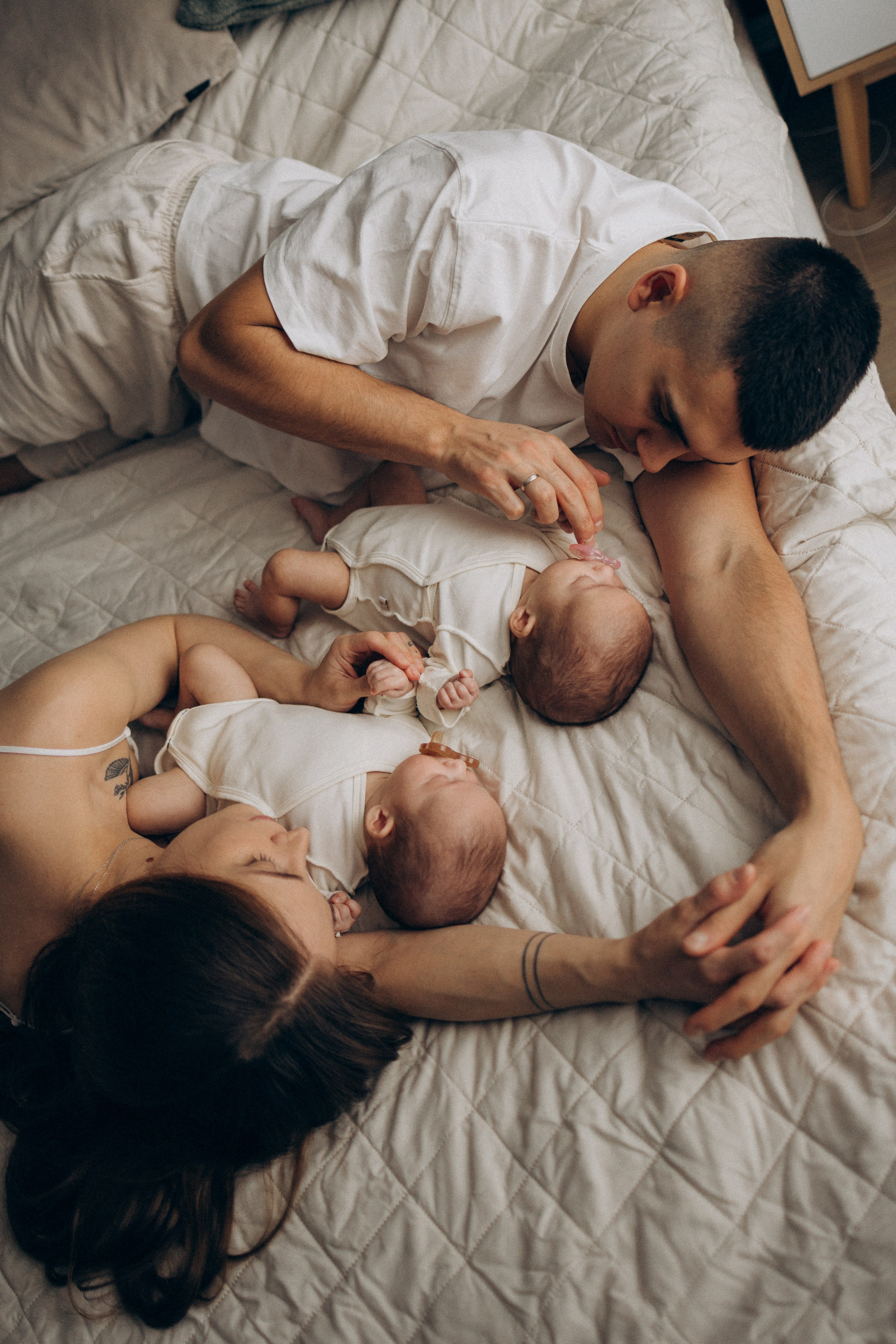 Съёмка новорожденных двойняшек — это всегда двойная нежность и волшебство. Два сердечка, два взгляда, две пары крохотных ладошек и одна общая история, наполненная любовью.